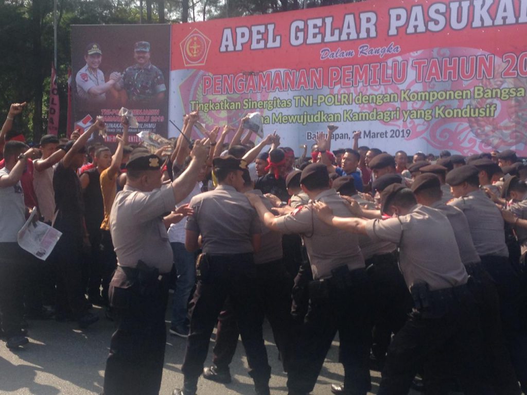 Aksi massa tersebut, adalah bagian dari simulasi sistem pengamanan kota (Sispamkota) dalam persiapan pengamanan Pemilu Presiden dan legislative 17 April 2019 di Kota Balikpapan yang digelar Polda Kaltim dan Kodam VI Mulawarman.