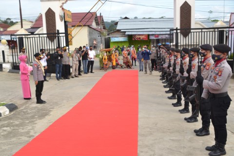 Hari ini Senin (26/10/2020) di Mapolres Kubar dilaksanakan acara pisah sambut Kapolres Kubar. Acara pisah sambut tersebut diawali dengan tradisi Tepung Tawar dan adat istiadat yang ada di Kabupaten Kutai Barat dan secara kedinasan dilaksanakan penyambutan dengan pedang pora oleh Para perwira Polres Kubar kepada kapolres yang baru AKBP Irwan Yuli Prasetyo, S.I.K, sementara itu AKBP Roy Satya Putra, S.I.K.,M.H menjalankan tugasnya yang baru sebagai Wadir Binmas Polda Kaltim.