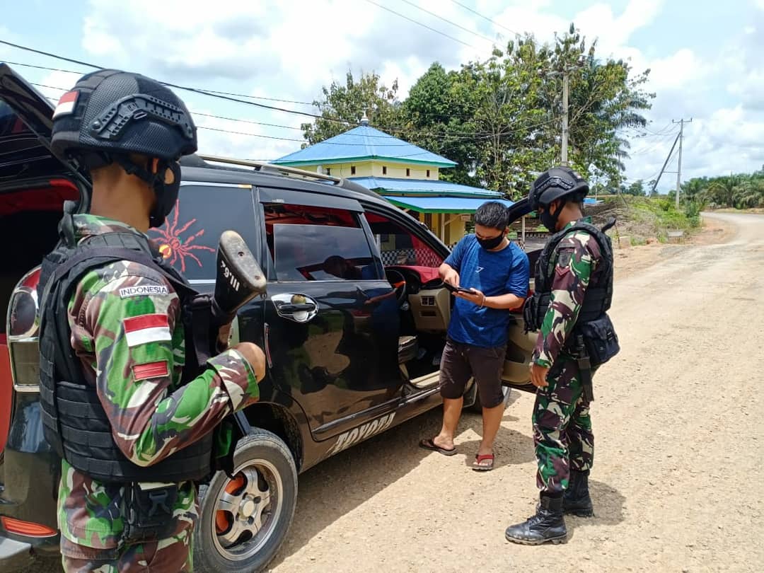 SEBUKU, Inibalikpapan.com – Untuk mewujudkan keamanan wilayah, Satgas Pamtas Yonif 623/BWU melaksanakan pemeriksaan rutin di jalan depan Pos Tembalang di Desa Apas, Kecamatan Sebuku, Kabupaten Nunukan, Kalimantan Utara, Senin (12/10/2020).