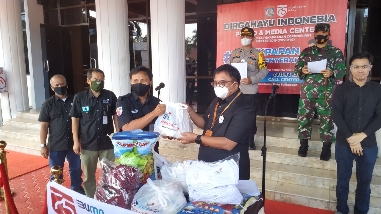Penyerahan bantuan dilakukan GM Telkom Balikpapan Deny Aryanto kepada wali kota juga Ketua Satgas Covid-19 Rizal Effendi, di kantor Pemkot, Jumat sore (25/9/2020).