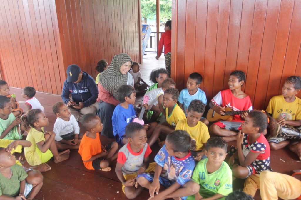 Di desa Sawingrey, media dan tim Telkomsel disambut puluhan anak-anak desa yang lihai memainkan alat musik gitar kecil dengan lagu-lagu sambutan sambil sejumlah rekan media memberikan makanan kepada kumpulan ikan-ikan dibawah panggung lokasi rehat rombongan.