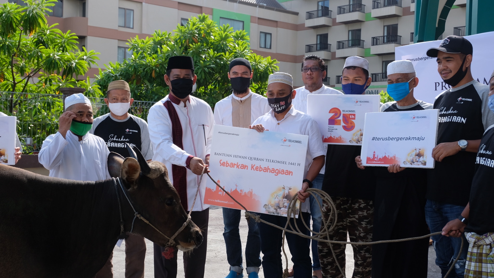 Penyerahan hewan kurban secara simbolis dari Telkomsel kepada perwakilan penerima manfaat bantuan yang ada di Jakarta, Medan, Surabaya dan Balikpapan yang mewakili 599 lokasi di seluruh Indonesia, Kamis, (30/7/ 2020).