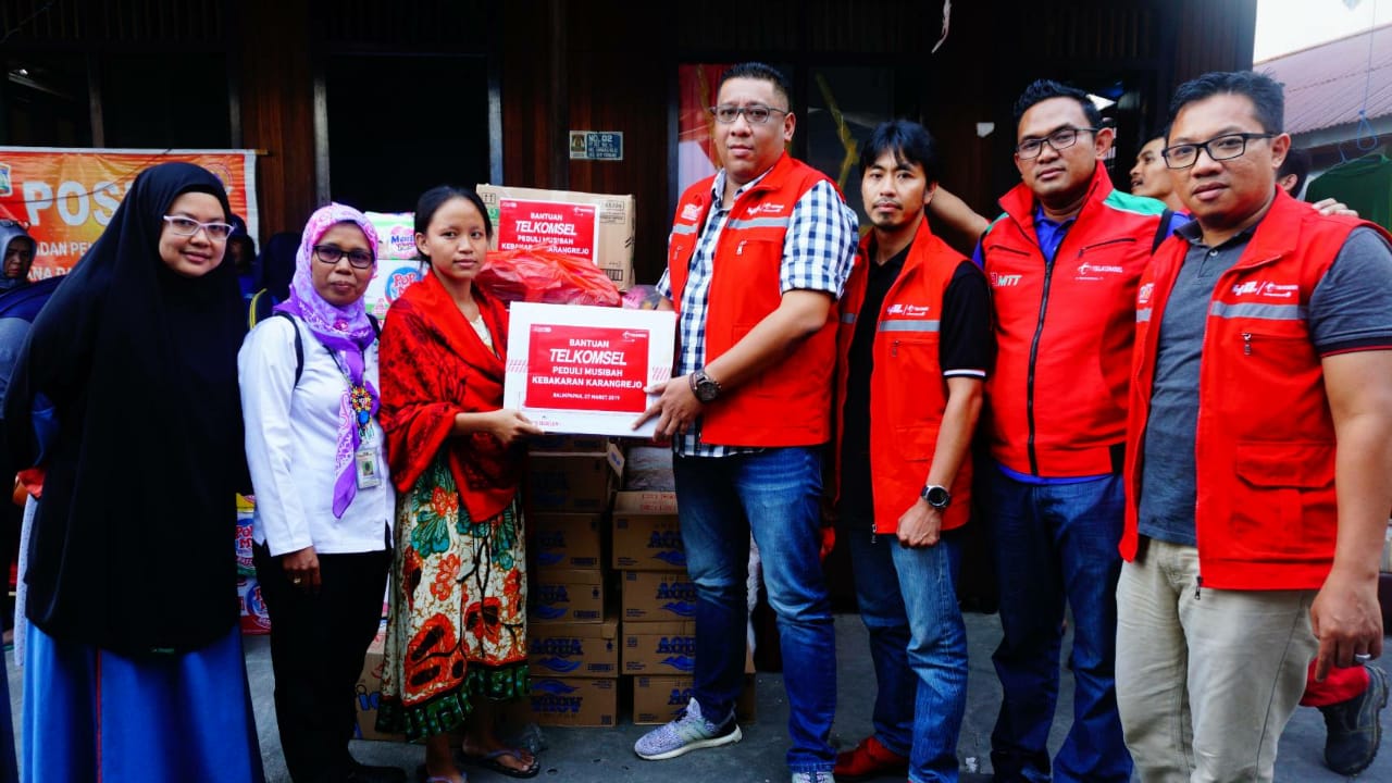 Telkomsel Salurkan Bantuan Korban Kebakaran Karang Rejo