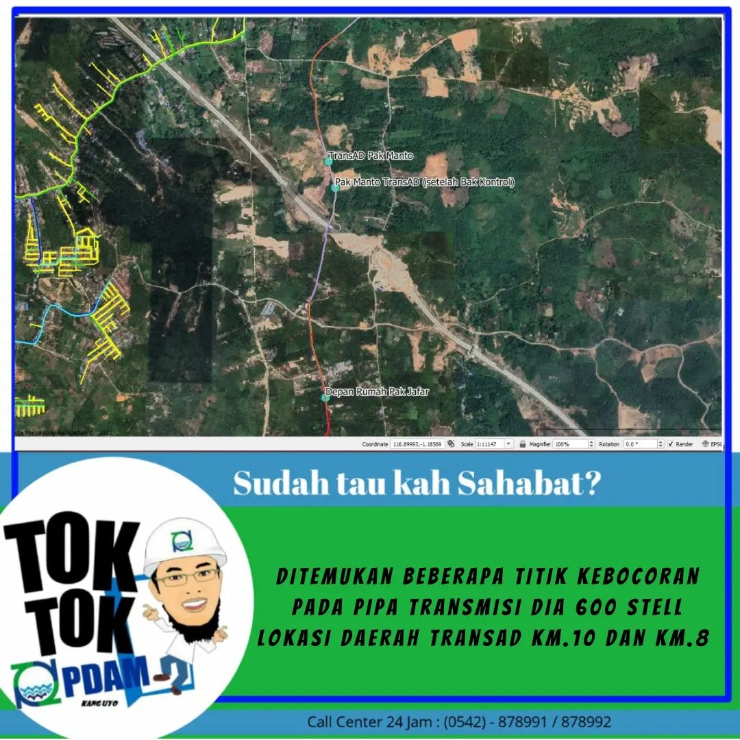 Perbaikan dimaksud tindak lanjut dari ditemukannya beberapa titik bocor pada pipa transmisi dia 600 Stell lokasi daerah Transad KM.10 dan KM.8 sehingga mengurangi kapasitas produksi.