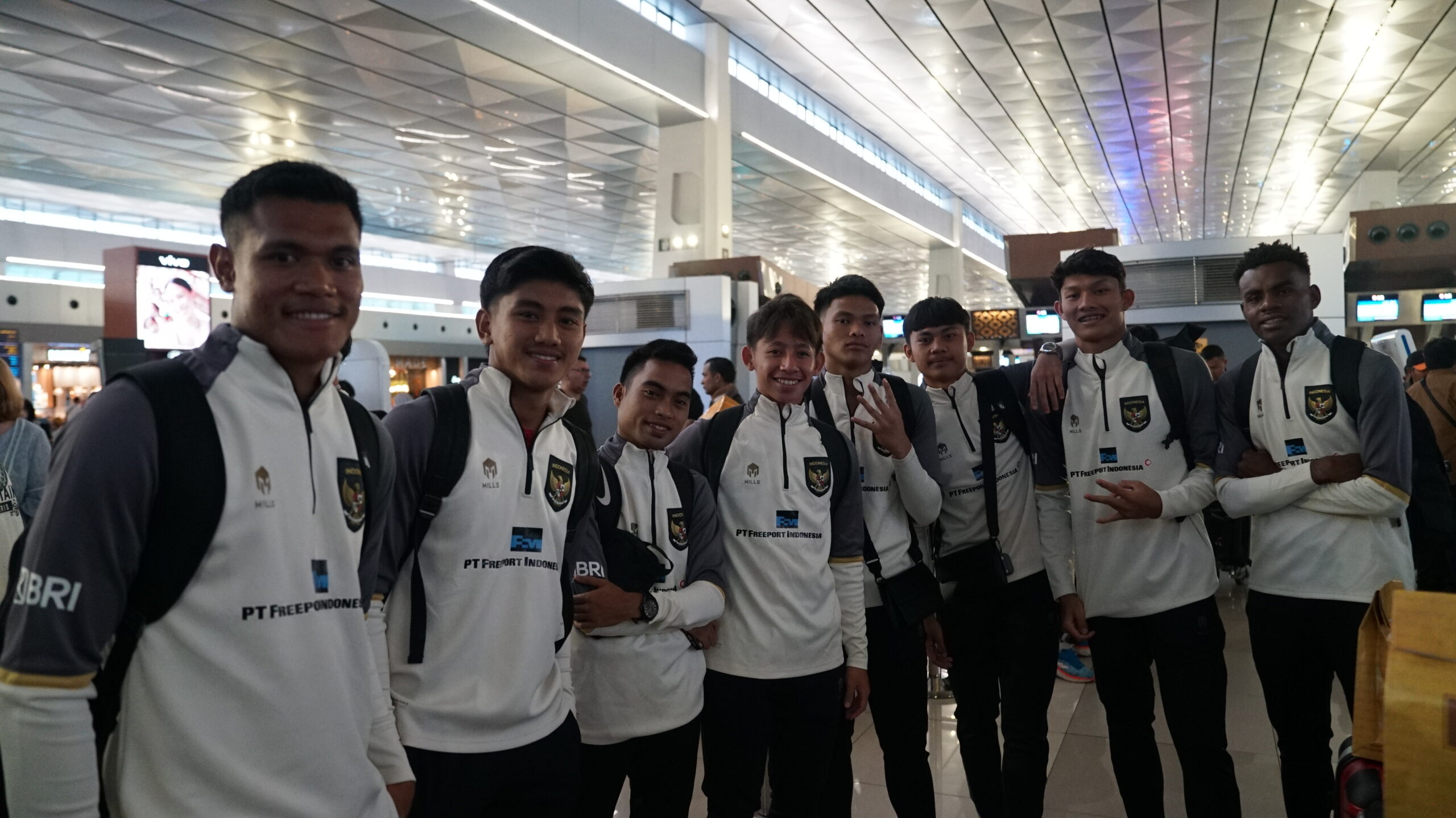 Sebanyak 26 pemain yang dikomandoi pelatih Indra Sjafri berangkat dari Bandara Internasional Soekarno-Hatta dengan menggunakan pesawat Qatar Airways.