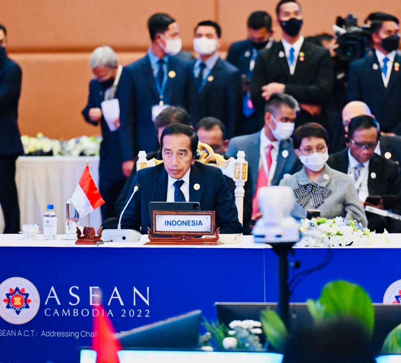 Turut hadir mendampingi Presiden Jokowi dalam upacara penutupan KTT ASEAN Kamboja yaitu Menteri Koordinator Bidang Politik, Hukum, dan Keamanan Mahfud MD, Menteri Koordinator Bidang Perekonomian Airlangga Hartarto, Menteri Luar Negeri Retno Marsudi, dan Menteri Sekretaris Negara Pratikno
