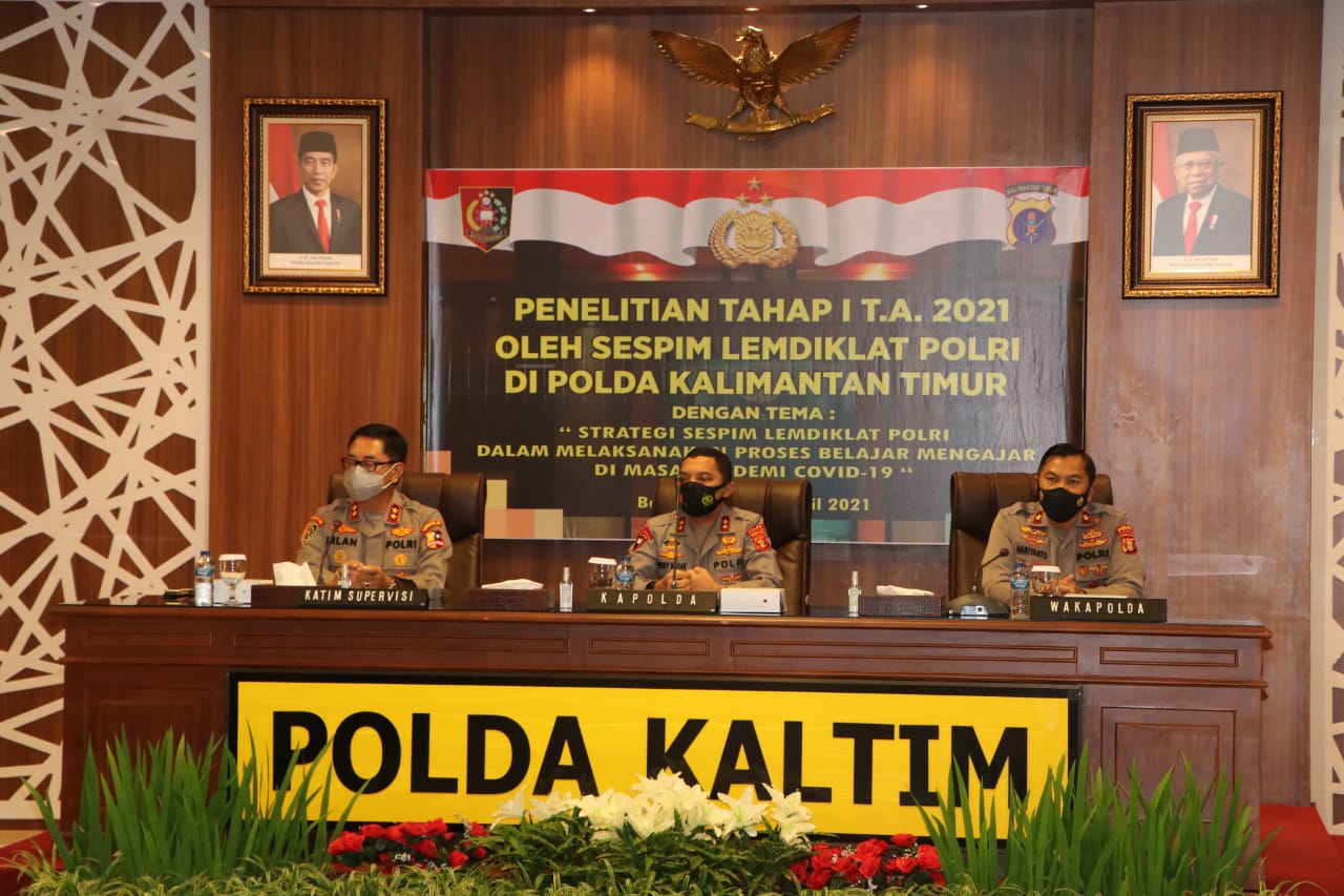 Balikpapan, Inibalikpapan.com – Dalam rangka menyampaikan Strategi Sespim Lemdiklat Polri dalam melaksanakan Proses Belajar Mengajar di masa Pandemi Covid-19, Polda Kalimantan Timur (Kaltim) menerima kunjungan kerja dari Tim Sespim Lemdiklat Polri.