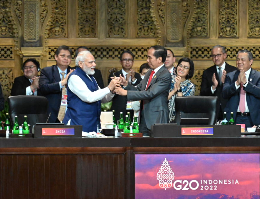 Sementara itu, PM Narendra Modi dalam sambutannya mengucapkan selamat kepada Presiden Joko Widodo yang telah memberikan kepemimpinan yang efisien pada G20, bahkan di masa-masa sulit. PM Modi juga mengucapkan selamat kepada seluruh negara G20 yang telah mengadopsi Deklarasi G20 Bali.