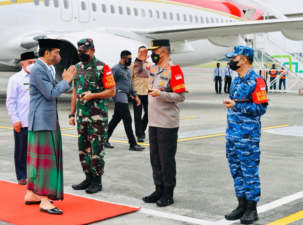 Balikpapan, Inibalikpapan.com – Presiden RI Joko Widodo melakukan kunjungan kerja di Provinsi Kalimantan Timur, Senin (31/1/2022). Kedatangan Presiden RI tersebut disambut langsung oleh Gubernur Kaltim Isran Noor, Pangdam VI/MLW Mayjen TNI Teguh Pudjo Rumekso, Kapolda Kaltim Irjen Pol Drs. Imam Sugianto, M.Si., Danlanud Balikpapan Kolonel Pnb Dedy Susanto.