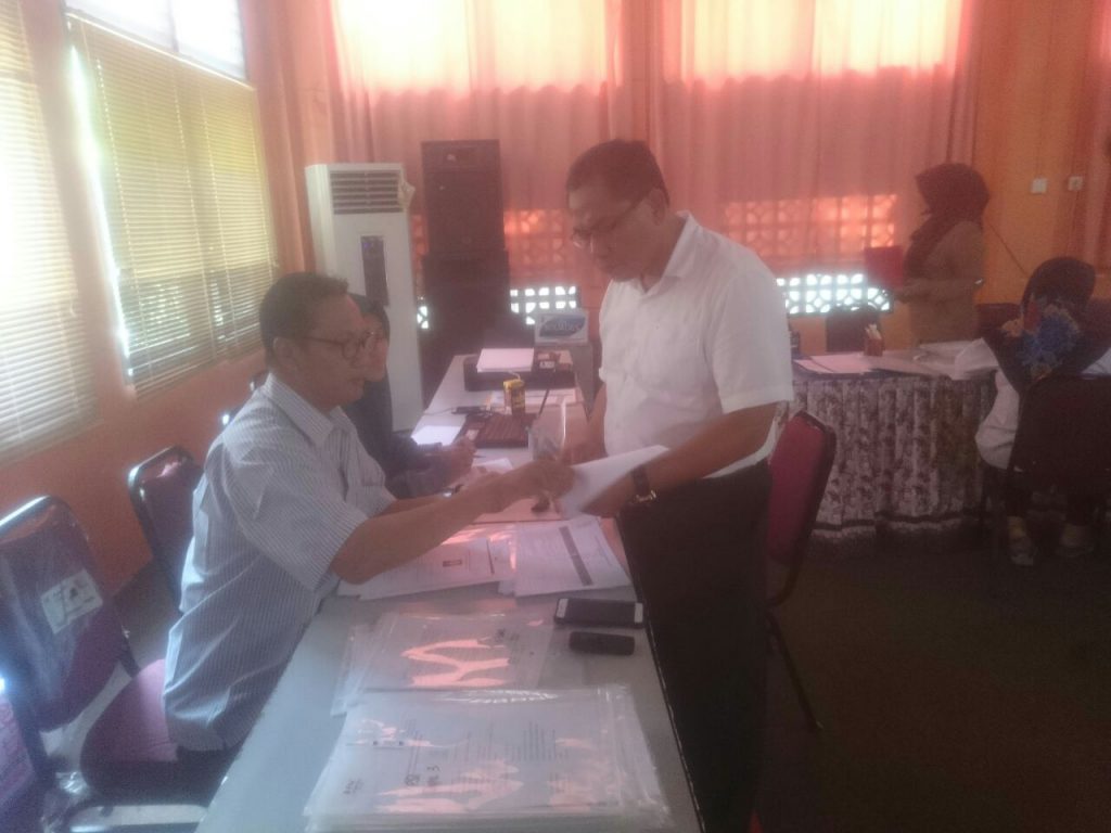 Ketua KPUD Noor Thoha mengecek proses verifikasi syarat pencalonan dan syarat caleg (18/7/2018).