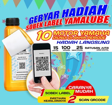 Masih ada 3 bulan lagi kesempatan para konsumen oli Yamalube Asli membawa pulang hadiah langsung menarik dari balik label Oli Yamalube Asli serta hadiah undian yang pemenangnya akan diumumkan di akhir periode program Gebyar Hadiah Sobek Label Yamalube.