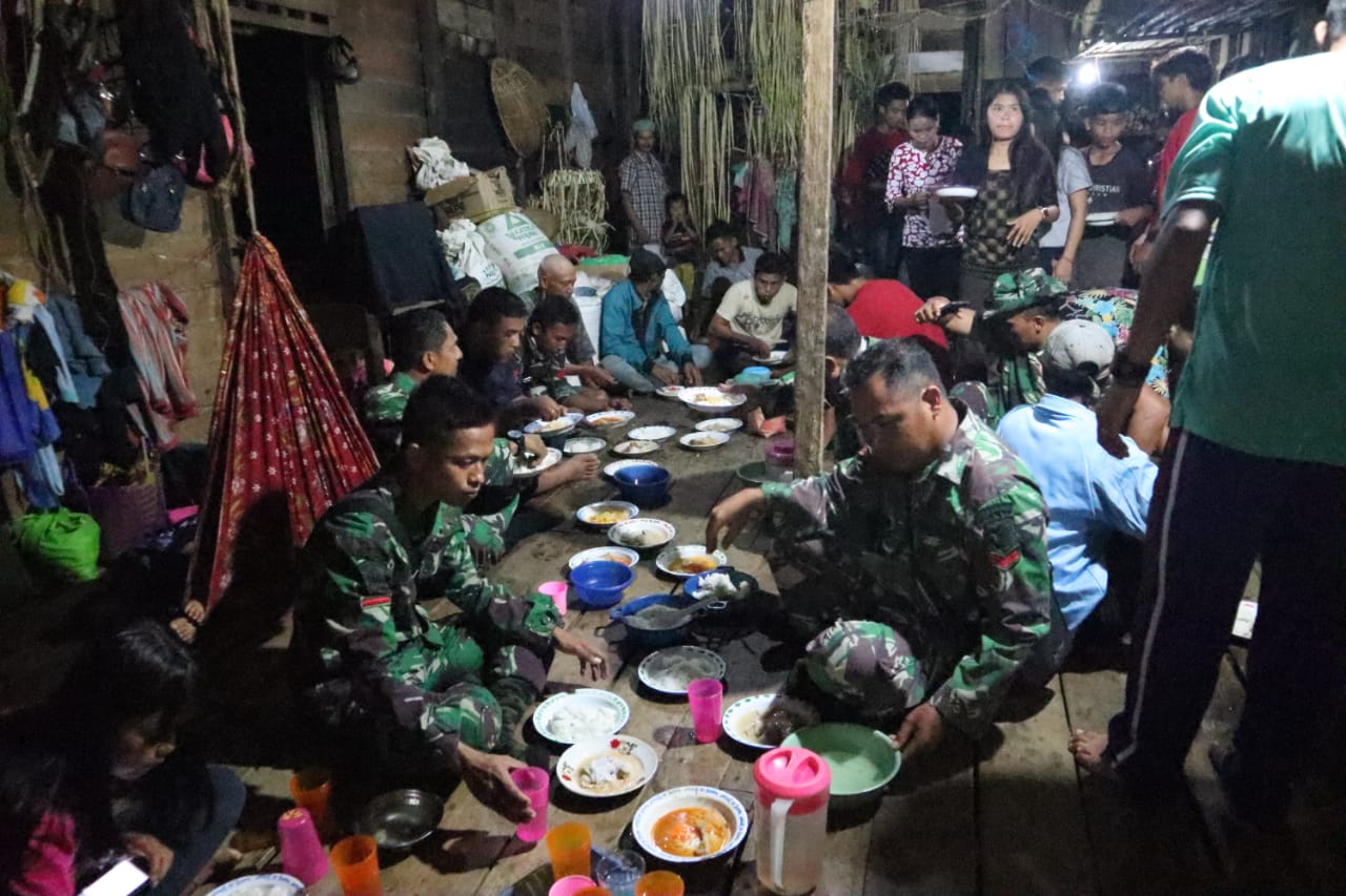 Waktu sebulan banyak mereka lewatkan dengan warga, termasuk saat sarapan pagi dan makan malam mereka lakukan bersama- sama warga dan para anggota satgas lainya, ini terlihat di rumah Didi, warga setempat yang rumahnya menjadi safe house bagi satgas TMMD ke 106.