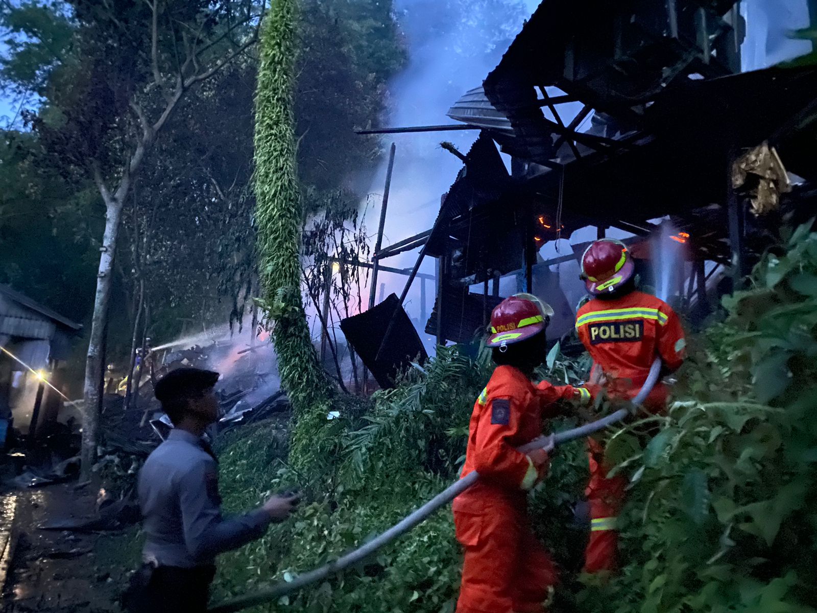 Tim Subdit Pammat Polda Kaltim Bantu Padamkan Si Jago Merah di Kelurahan Sumber Rejo Balikpapan