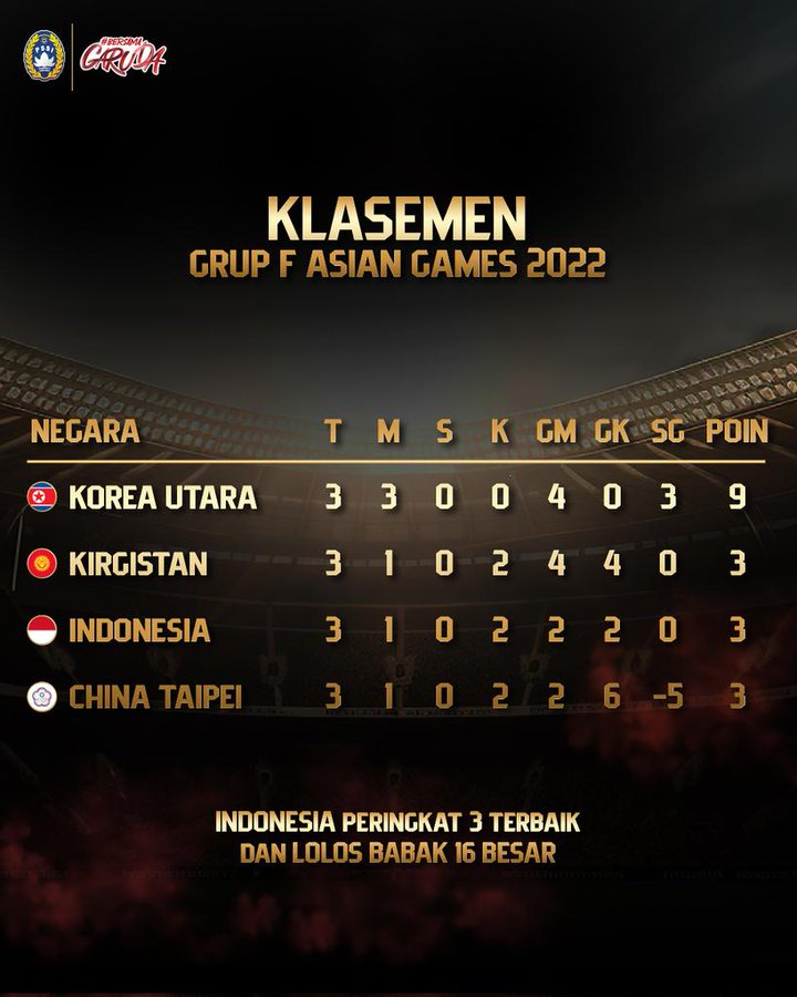 Sementara Kirgistan yang sempat kalah 0-2 dari Indonesia juga lolos sebagai runner up. Sedangkan China Taipei yang sempat mengalahkan Indonesia 1-0 harus tersingkir