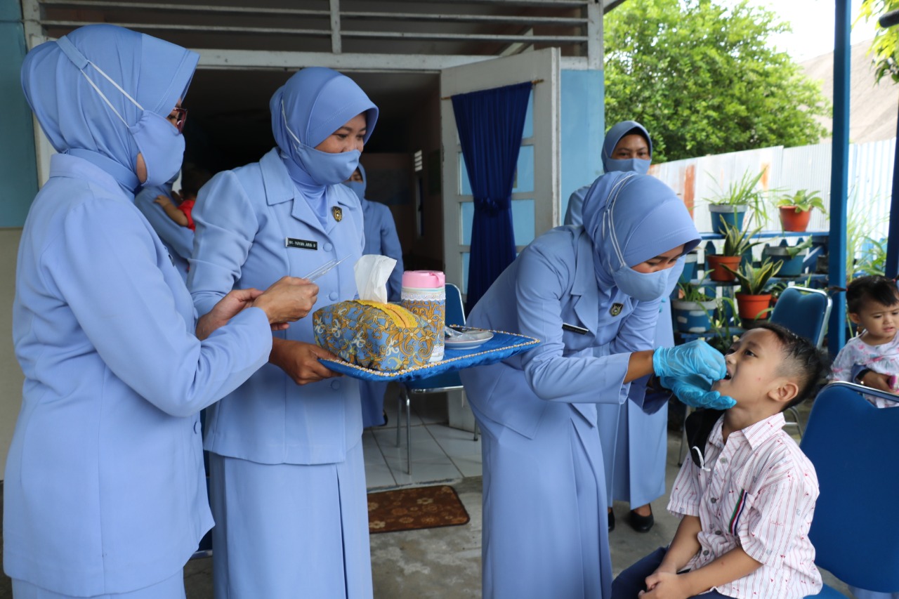 Tingkatkan Kesehatan, Ketua PIA Ardhya Garini Lanud Dhomber Beri Vitamin A ke Balita