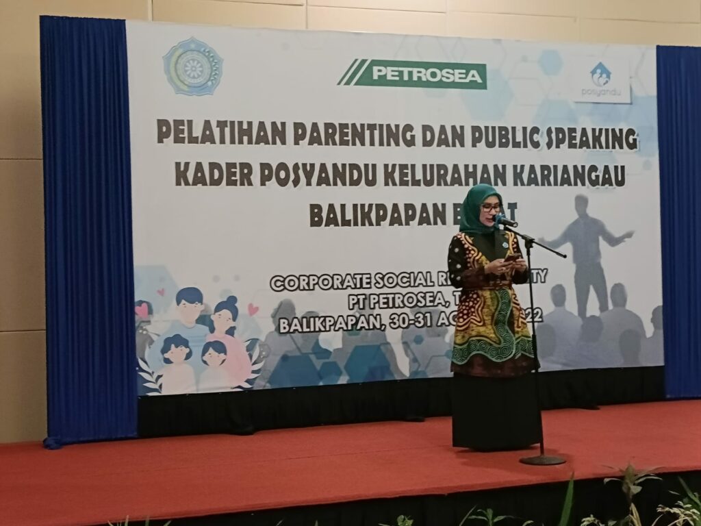 BALIKPAPAN,Inibalikpapan.com – Pentingnya peningkatan dan pendalaman pengetahuan tentang pola asuh orang tua terhadap anak (parenting) dan bina keluarga balita khususnya di wilayah Kariangau, Balikpapan Barat membuat pihak PT Petrosea Tbk bekerja sama dengan Tim Penggerak PKK Kelurahan Kariangau dan Puskesmas Kariangau menggelar pelatihan parenting dan public speaking terhadap para kader-kader posyandu di Kariangau.