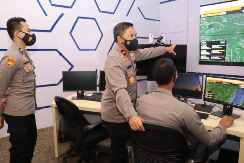 Peninjauan ruang comman center ini dalam rangka pengecekan Polda Kaltim dalam penanganan karhutla di wilayah Polda Kaltim.