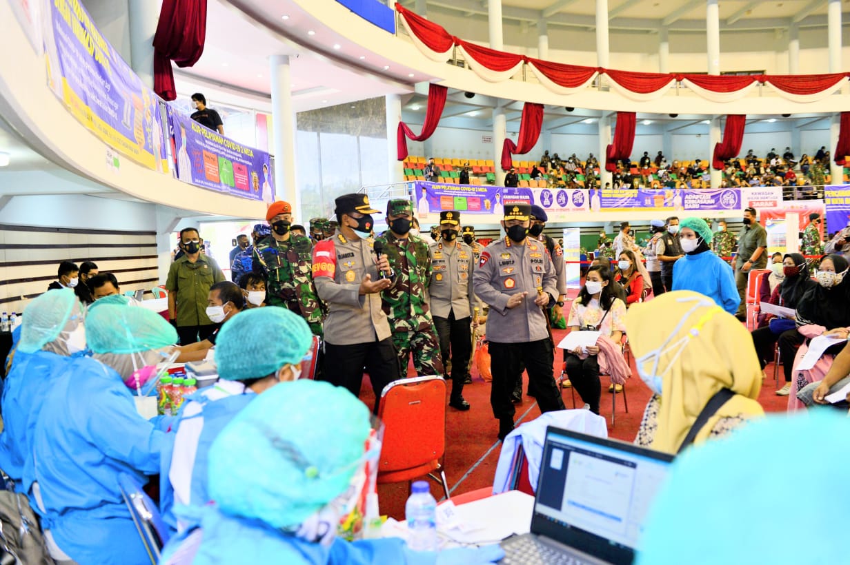 Kegiatan vaksinasi massal yang dihadiri Panglima dan Kapolri ini merupakan kegiatan vaksinasi massal ketiga yang dilaksanakan, setelah sebelumnya juga dilaksanakan pada tanggal 24 Juli 2021 dan 26 Juli 2021 serta telah berhasil memvaksinasi 5.042 orang dengan rincian sebagai berikut pada tanggal 24 Juli 2021 sebanyak 2.173 orang disuntik dosis 1 dan tanggal 26 Juli 2021 sebanyak 2.869 orang disuntik dosis 2.