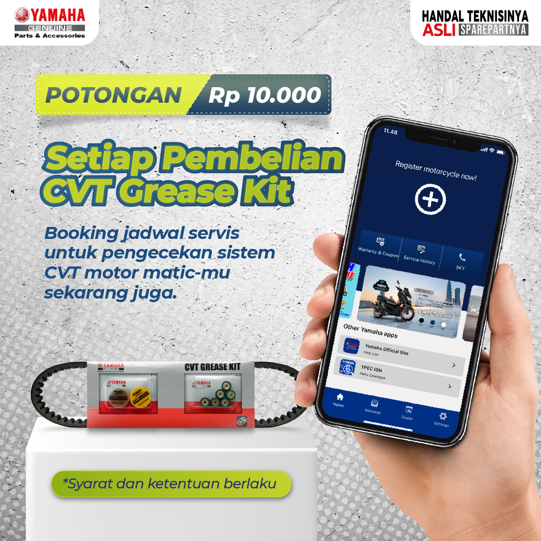 Dan kabar baiknya, untuk setiap pembelian CVT Kit selama bulan Juli 2022 konsumen akan mendapatkan potongan langsung senilai Rp 10.000, di seluruh bengkel resmi Yamaha.