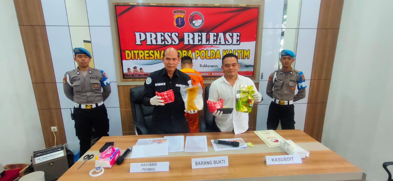 Sabu diseludupkan dengan cara dikemas menggunakan bungkus teh untuk mengelabui petugas. pelaku diamankan di Balikpapan, Kamis (7/9/2023).