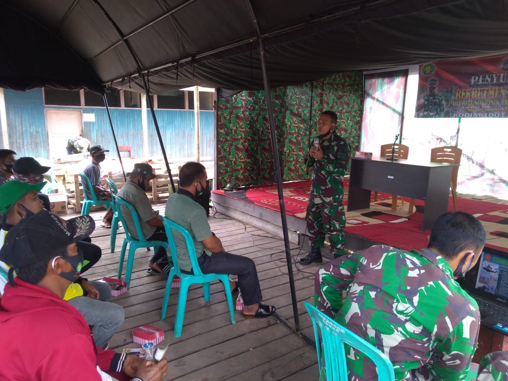 AMUNTAI, Inibalikpapan.com – Selain program fisik, Satuan Tugas TNI Manunggal Membangun Desa (Satgas TMMD) ke 109 tahun 2020 Kodim 1001/Amuntai juga menggelar penyuluhan rekrutmen Prajurit TNI AD dan Rekrutmen POLRI di Desa Sarang Burung Kecamatan Danau Panggang, Kab. Hulu Sungai Utara, Rabu (14/10/2020).