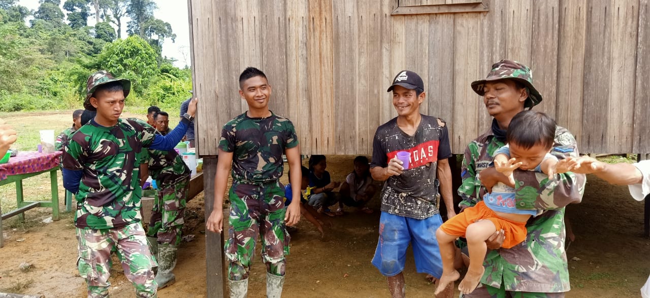 Sementara itu Kopda Marinir Warsito dari Lantamal Tarakan bersama rekan-rekan anggota satgas dari 614/Rjp asyik bercengkrama dengan anak salah satu warga, bahkan Kopda Warsito menggendong anak tersebut layaknya anak sendiri.