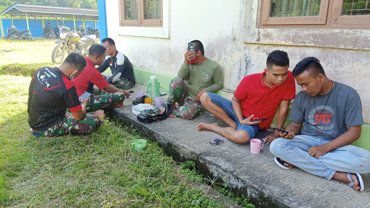 Seperti yang dialami oleh Serda Muhtarom bersama teman-temannya kebetulan lokasi kegiatan berada tidak jauh dari kantor Camat Malinau Selatan, Kabupaten Malinau, Kalimantan Utara. “Mereka beristirahat di belakang kantor Camat (insert foto) yang tersedia WiFi-nya, jadi tidak susah-susah harus memanjat pohon,” ucap Serda Muhtarom pada penulis saat dikonfirmasi melalui handphone seluler, Jum’at (09/10/2020).