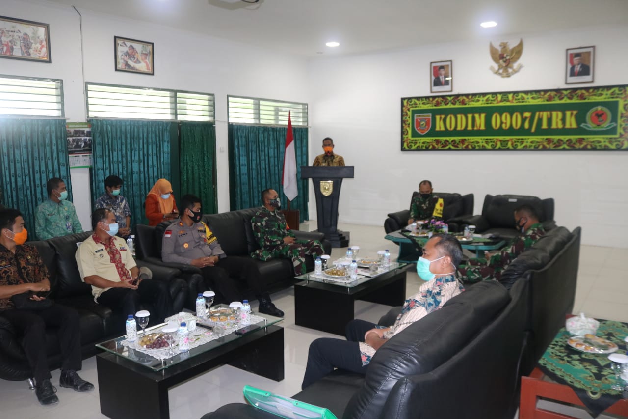 Didampingi Danrem 092/Mrl Brigjen TNI Suratno, Tim Wasev disambut langsung Komandan Kodim 0907/Trk selaku Dansatgas TMMD, di Makodim 0907/Tarakan, Kamis (15/10/2020).