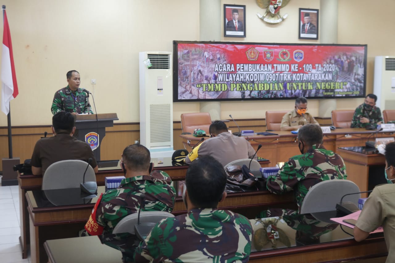 TARAKAN, Inibalikpapan.com – Berbeda dengan tahun – tahun sebelumnya,di tengah Pandemi Covid 19 TMMD ke 109 Kodim 0907/Trk secara resmi dibuka dengan acara seremonial oleh Walikota Tarakan Dr.Khaerul M.Kes, Selasa (22/09/2020).
