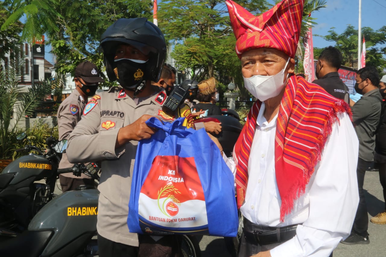 TNI Polri Berbagi 50 Paket Sembako ke Warga yang Isoman