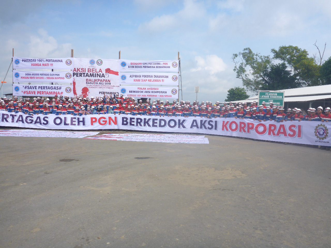 Di Balikpapan, aksi itu dikomandoi Serikat Pekerja (SP) Mathilda di kawasan kilang di area HEE Pertamina RU V, Rabu pagi selama 3 jam, (18/7/2018).