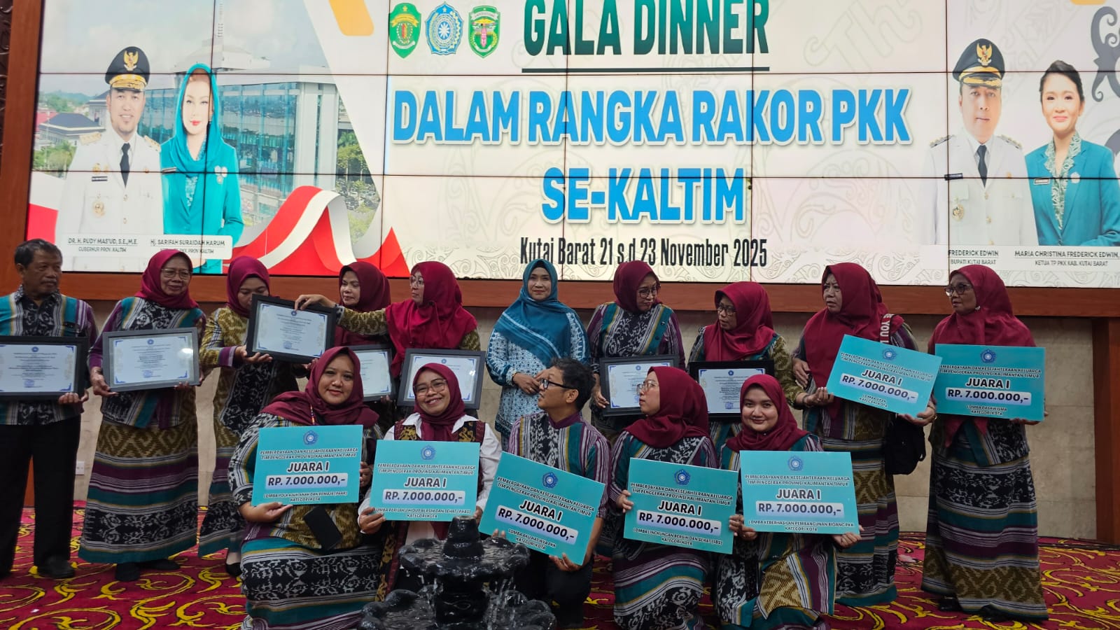 Prestasi tersebut diumumkan melalui Keputusan Ketua TP PKK Provinsi Kaltim Nomor 08/KEP/PKK.PROV/X/2025, yang menetapkan pemenang berbagai lomba, mulai dari Dasa Wisma, PAAR Peran Keluarga dalam Pencegahan Bully, UP2K PKK, Aku Hatinya PKK, hingga PHBS dan LBS.