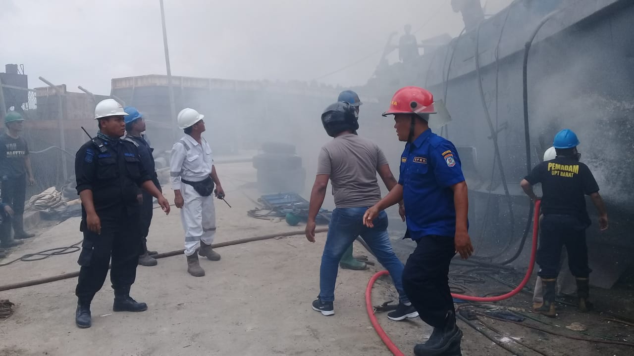 BALIKPAPAN, Inibalikpapan.com — Tug boat sedang dalam perbaikan atau dok di galangan kapal PT Asia Adhitama shipyard di Somber, Balikpapan Barat, terbakar pada pukul 11.00 wita, Selasa (24/9/2019).