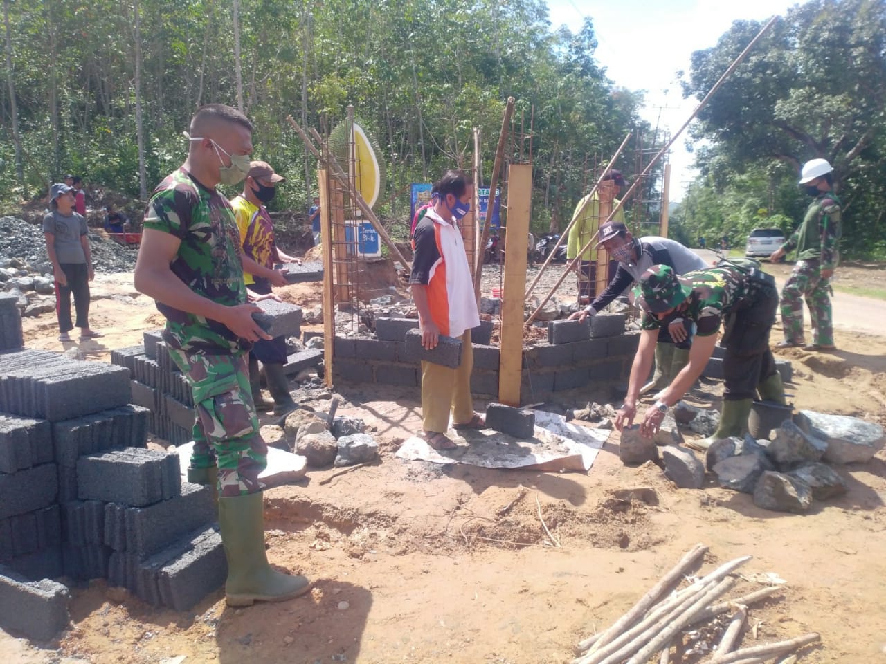 KARANG INTAN, Inibalikpapan.com – Tugu prasasti Durian icon warga desa Biih sedang di kerjakan oleh Satgas TMMD Reg Ke-108.