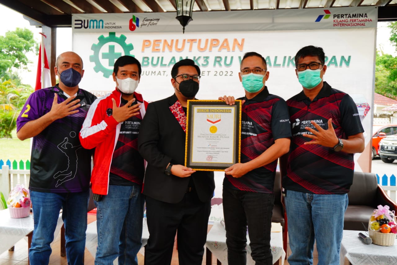 BALIKPAPAN,Inibalikpapan.com —Menutup bulan Keselamatan dan Kesehatan Kerja (K3) tahun 2022, Pertamina melalui PT Kilang Pertamina Internasional (KPI) Unit Balikpapan raih penghargaan Museum Rekor Dunia Indonesia (MURI), Jumat, 18/03/2022). Penghargaan tersebut diterima sebagai rekor program penurunan berat badan yang diikuti oleh paling banyak peserta.