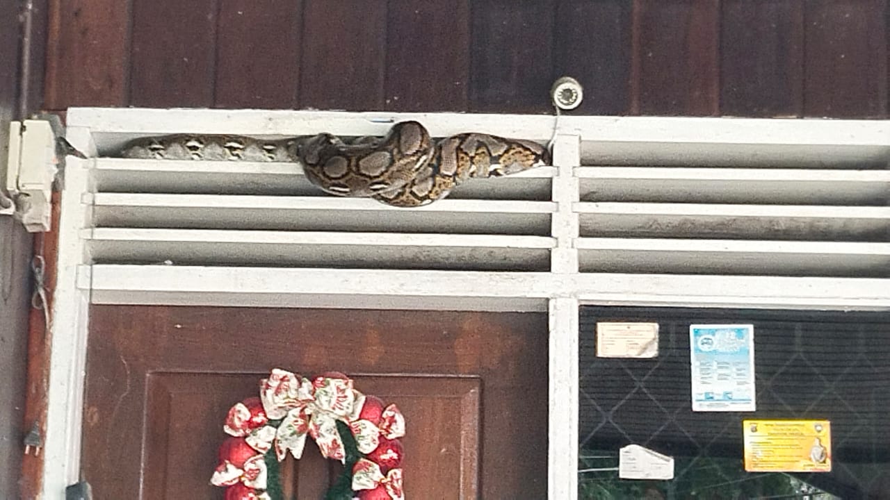 Ular Piton Melilit di Atas Pintu, Kagetkan Warga Gapura Merah, Balikpapan