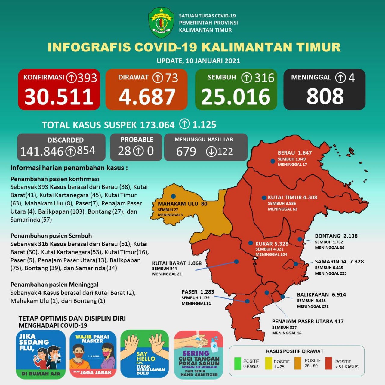 Update 10 Januari 2021 : Bertambah 393 Kasus Positif Covid-19 di Kaltim, 4 Kasus Kematian