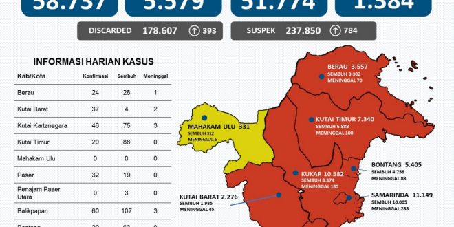 Update 10 Maret 2021 : Bertambah 296 Kasus Positif Covid-19 di Kaltim, 9 Kasus Kematian