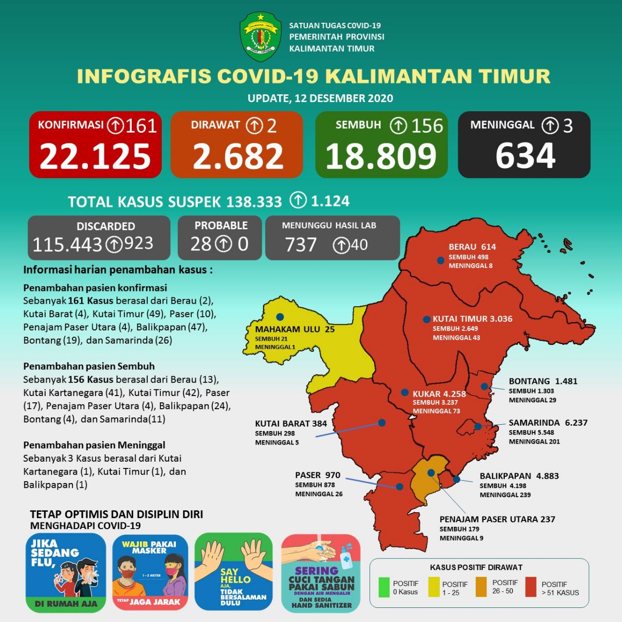 Update 12 Desember 2020 : Tembus 22.125 Positif Covid-19 di Kaltim, 634 Kasus Kematian