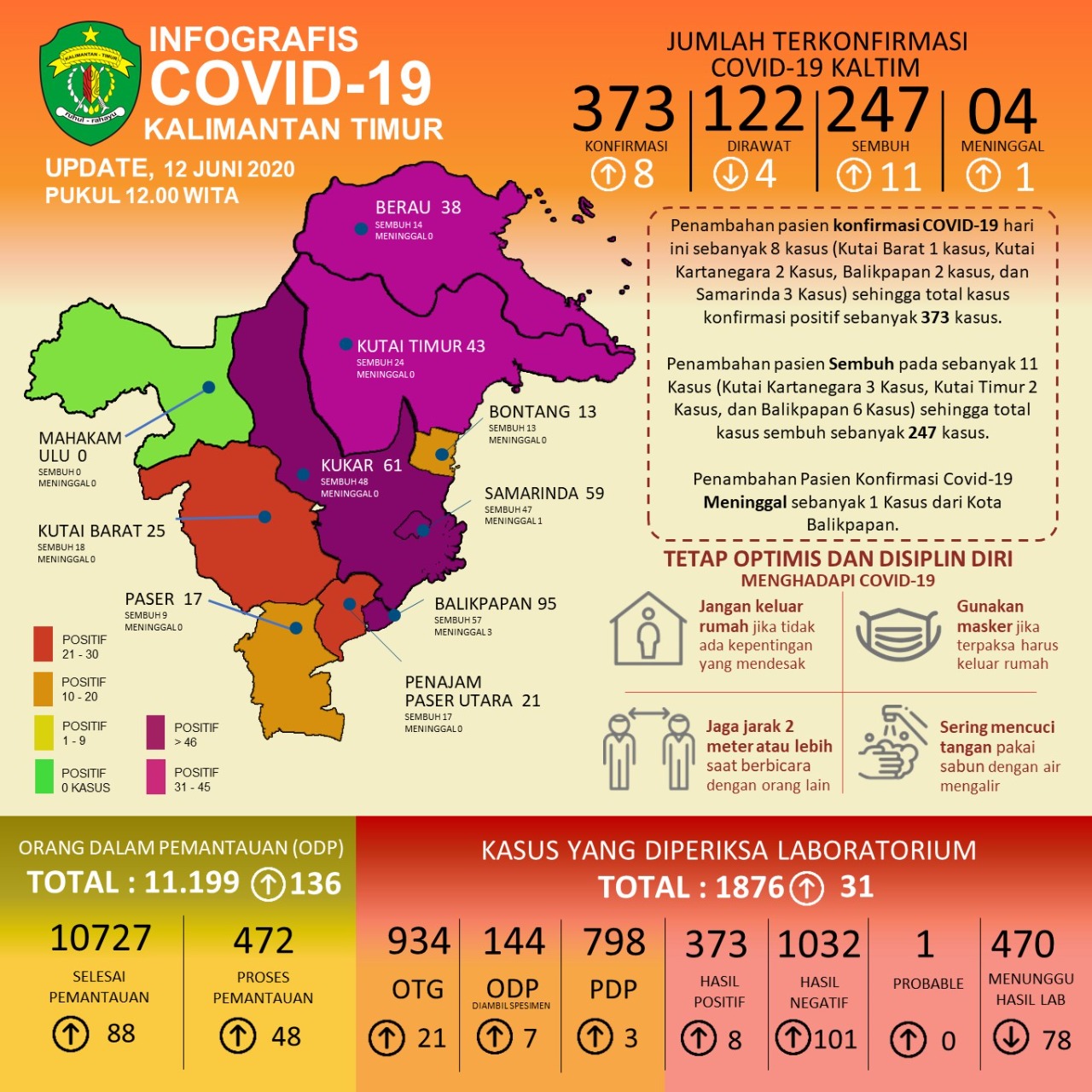 Update 12 Juni 2020 : Bertambah 8 Kasus Positif Covid-19 di Kaltim, 101 Kasus Negatif