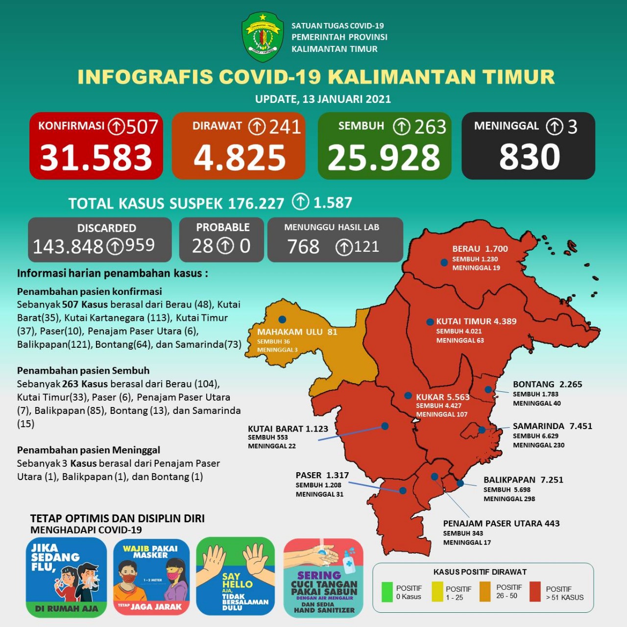 Update 13 Januari 2021 : Melonjak Lagi 507 Kasus Positif Covid-19 di Kaltim, 3 Kasus Kematian