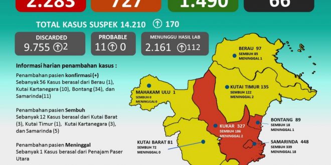 Update 15 Agustus 2020 : Bertambah 56 Kasus Positif Covid-19 di Kaltim, 12 Kasus Sembuh