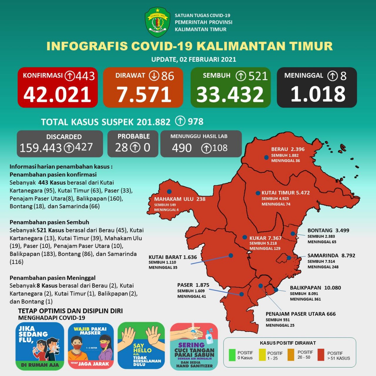 Update 2 Februari 2021 : Tembus 42.021 Kasus Positif Covid-19 di Kaltim, 1.018 Kasus Kematian