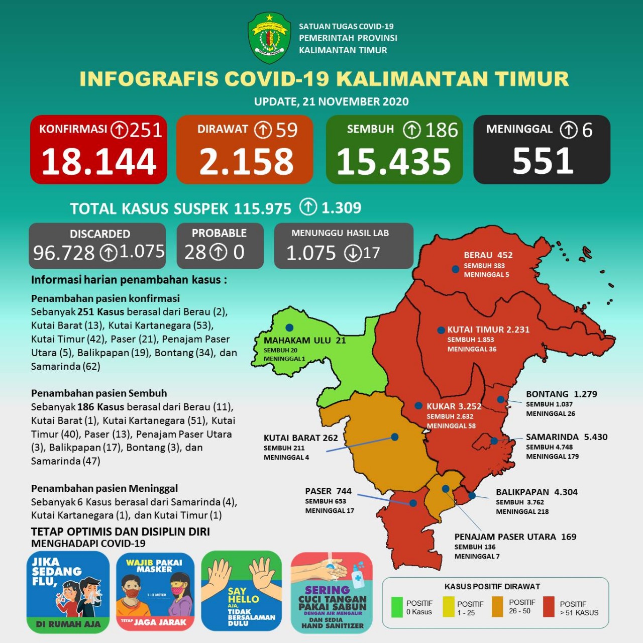 Update 21 November 2020 : Tembus 18.144 Kumulatif Kasus Covid-19 di Kaltim, 551 Kasus Kematian