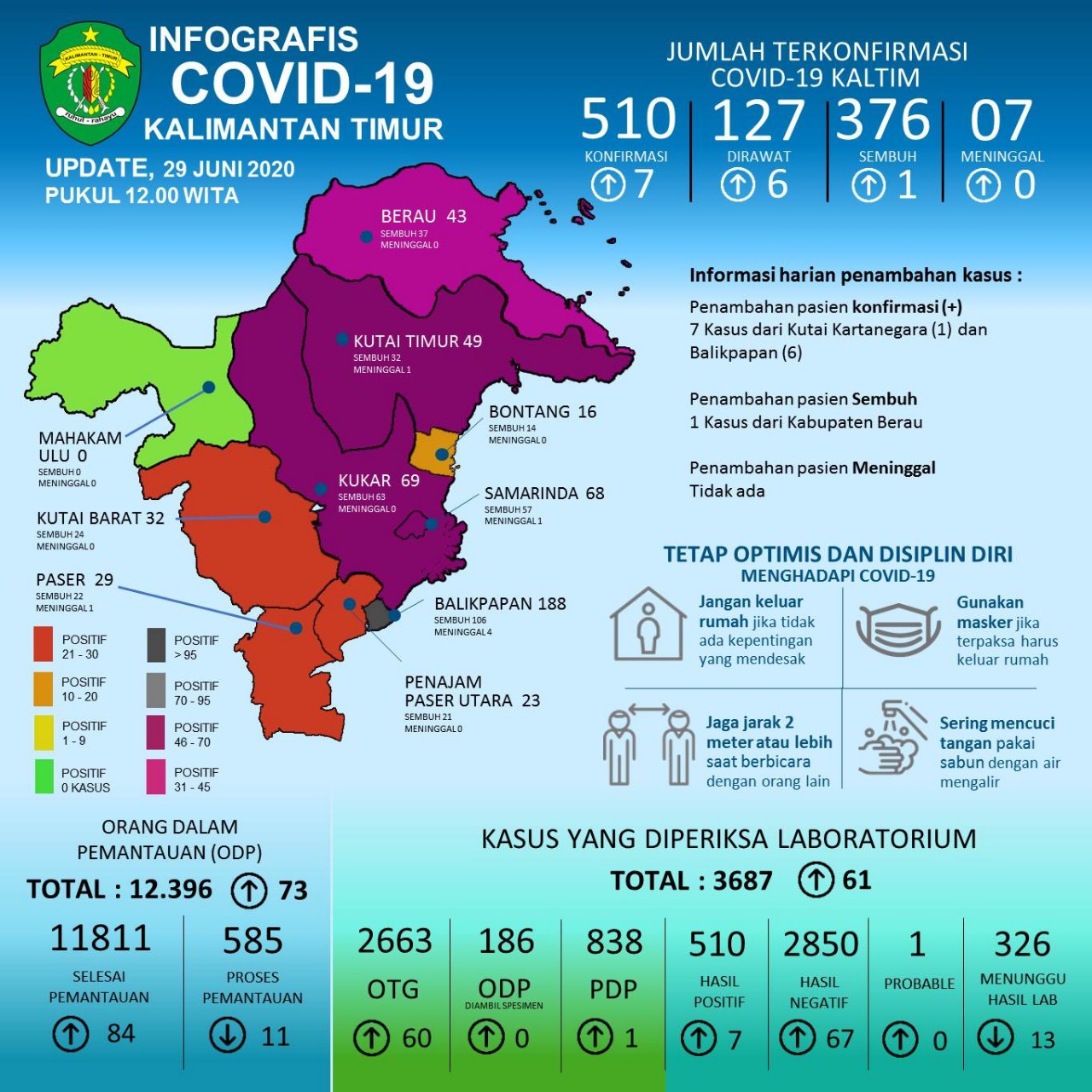 Update 29 Juni 2020 : Bertambah 7 Kasus Positif Covid-19 di Kaltim, 1 Kasus Sembuh