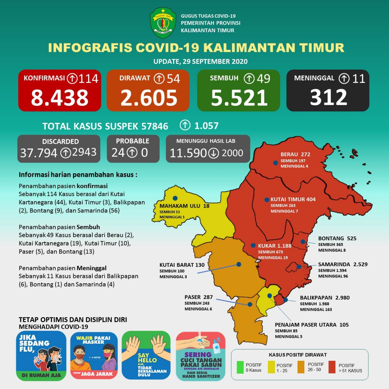 Update 29 September 2020 : Bertambah 114 Kasus Positif Covid-19 di Kaltim, 11 Pasien Meninggal