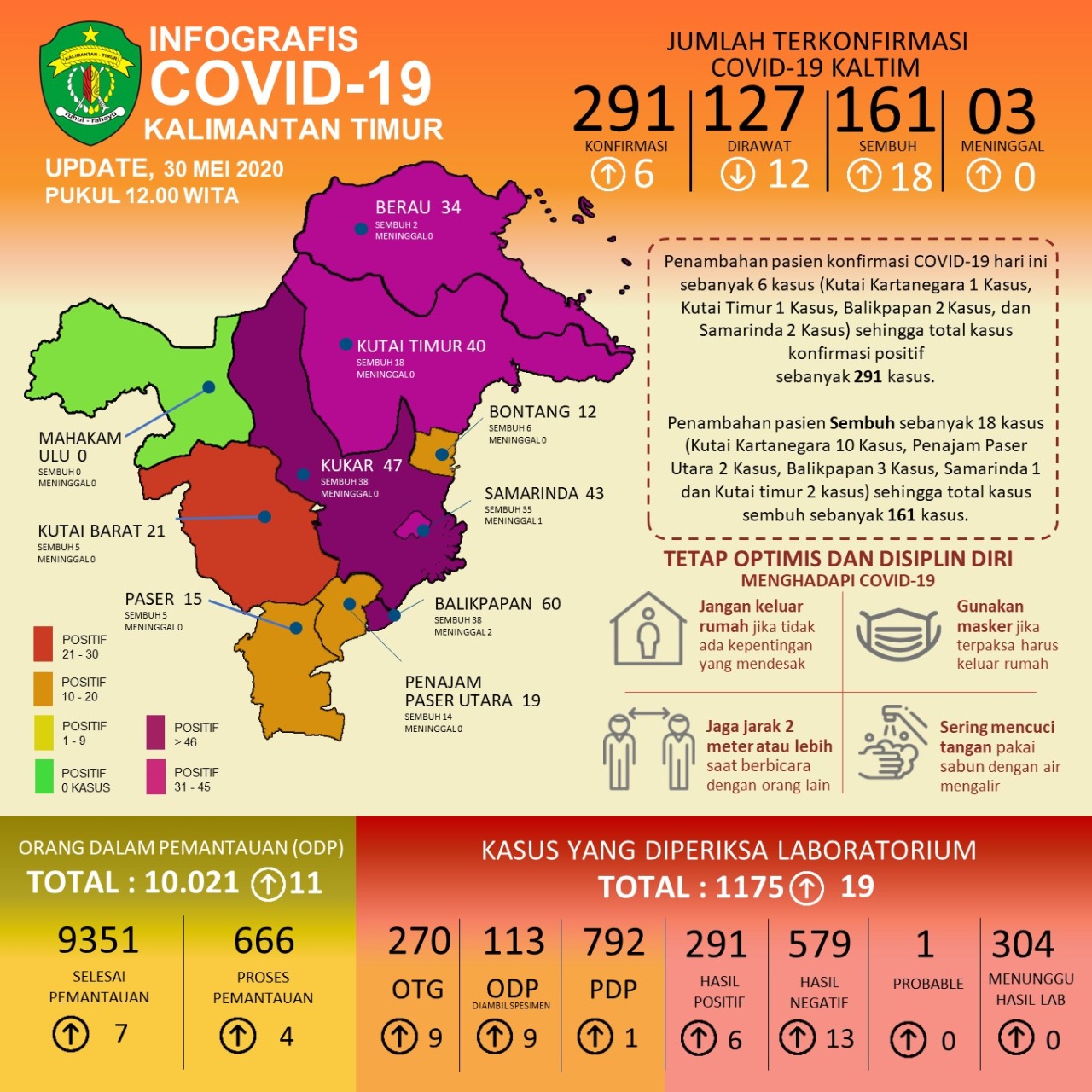 Update 30 Mei 2020 : Bertambah 6 Kasus Positif Covid-19 di Kaltim, 18 Kasus Sembuh