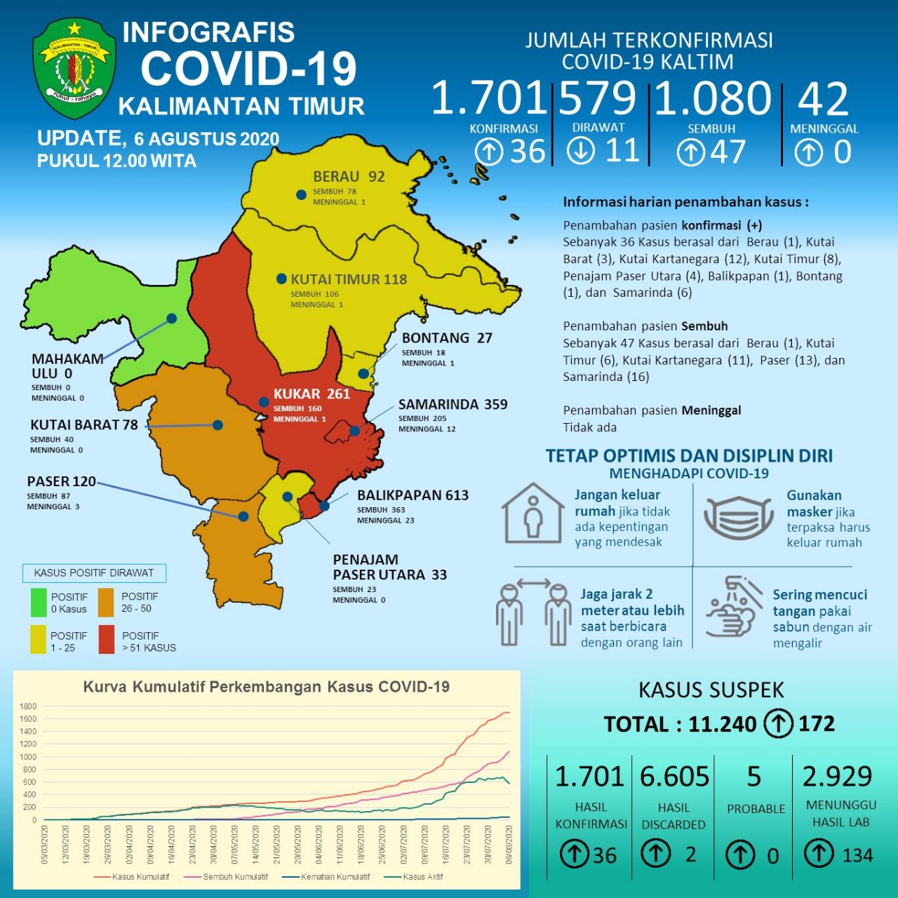 Update 6 Agustus 2020 : Bertambah 36 Kasus Positif di Kaltim, 36 Kasus Sembuh