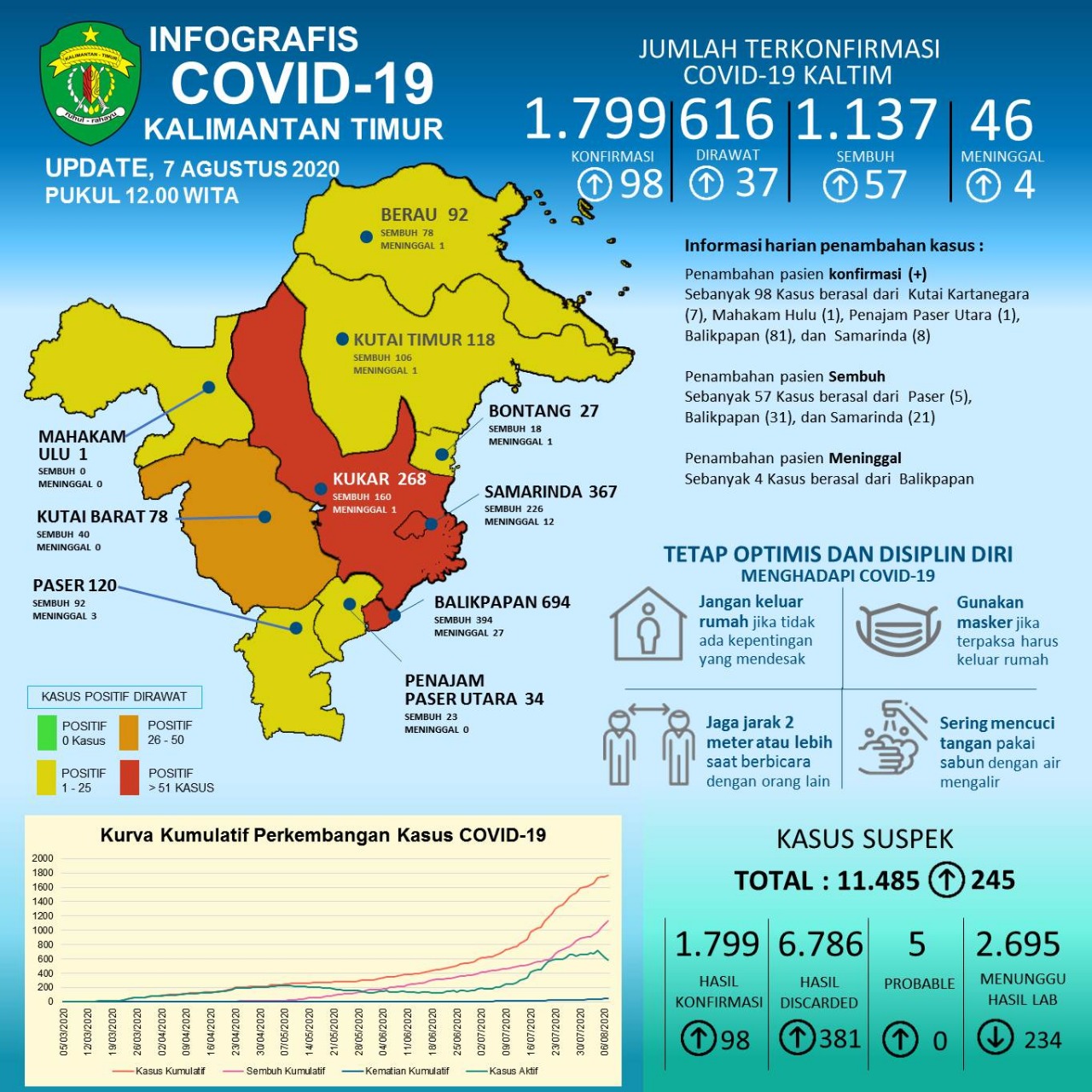 Update 7 Agustus 2020 : Bertambah 98 Kasus Covid-19 di Kaltim, Mahulu Kasus Pertama Positif