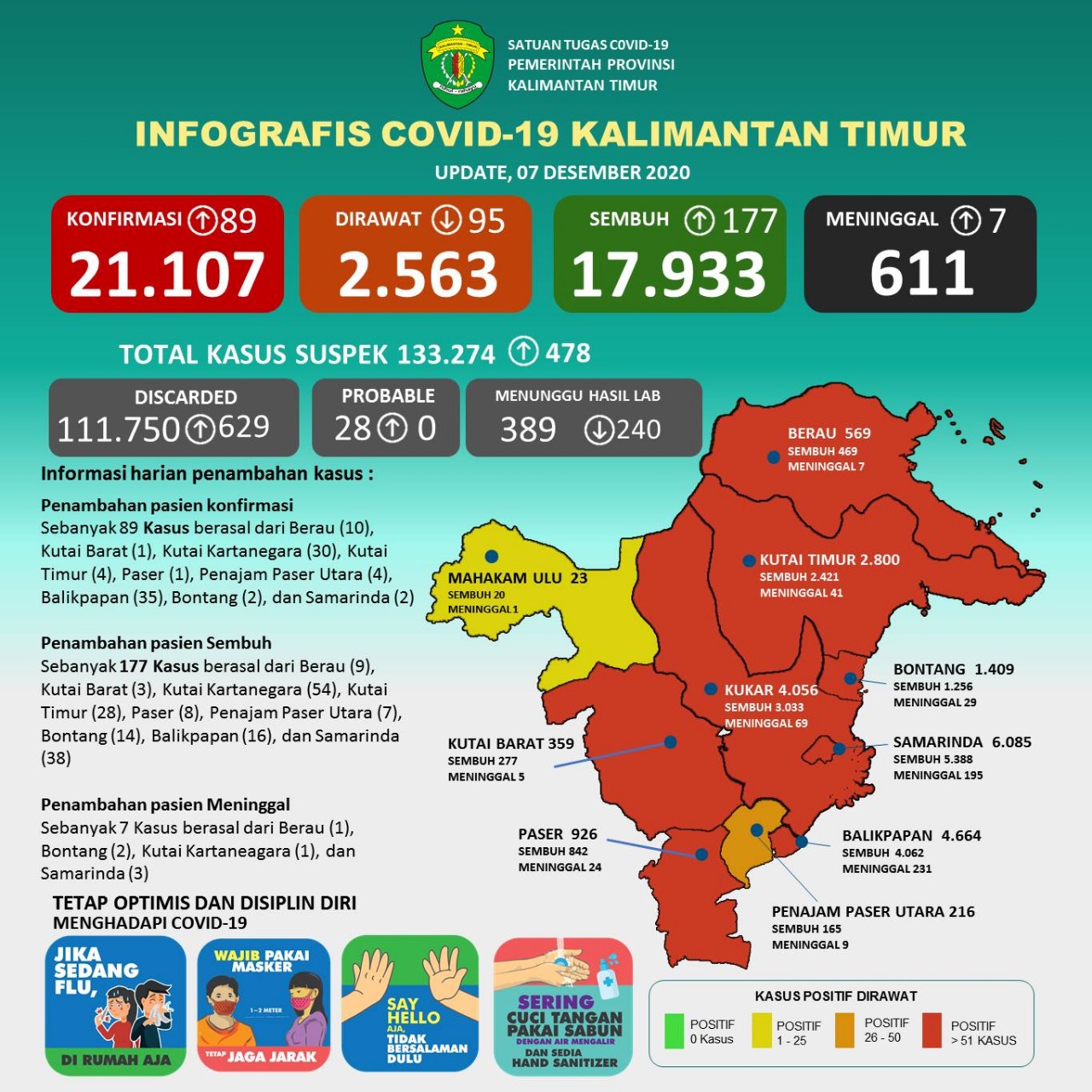 Update 7 Desember 2020 : Bertambah 89 Kasus Positif Covid-19 di Kaltim, 7 Kasus Kematian